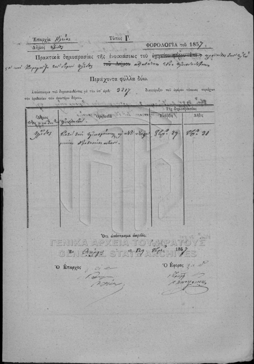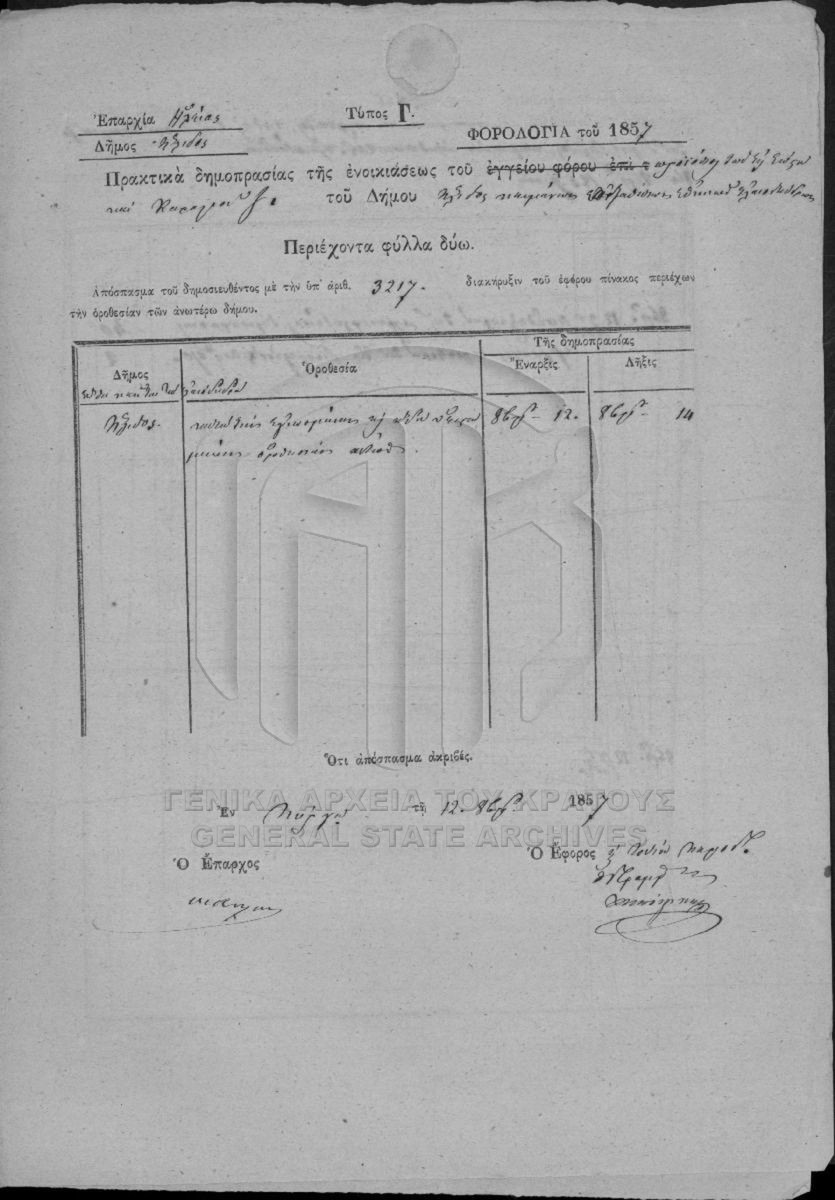 Multiannual and annual rentals of national perishable estates. Prefecture of Achaia and Ilida.