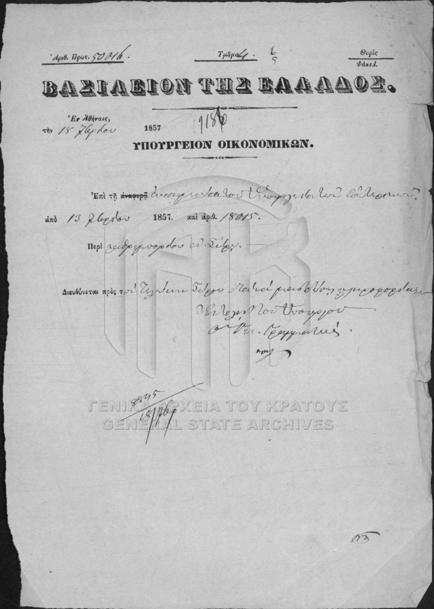 Αρχείο Εθνικών Κτημάτων  [1833 - 1869]