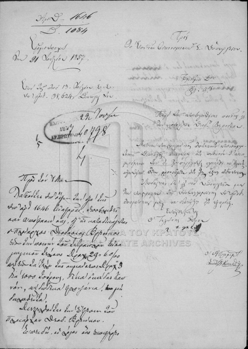 Φάκελος #2153 - Νομαρχία Αχαΐας και Ήλιδος, 1857  [1857]