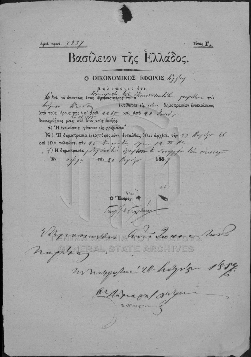 Multiannual and annual rentals of national perishable estates. Prefecture of Achaia and Ilida.