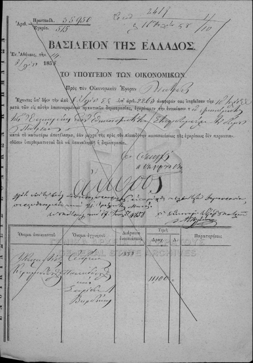 Location annuelle et pluriannuelles des terains nationaux soumis a l’usure. Departement d’Aitolie et Acarnanie.