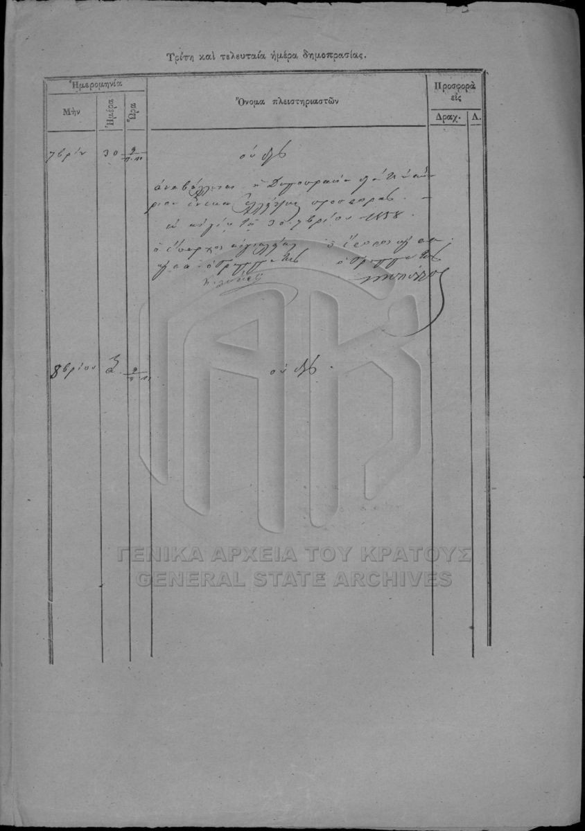 [Fonds] GRGSA-CSA_PAO005.01 SECRETARIAT/MINISTRY OF FINANCE ARCHIVE: NATIONAL LANDS (1833-1869) - SECRETARIAT/MINISTRY OF FINANCE ARCHIVE: NATIONAL LANDS (1833-1869) [1833 - 1869] Το αρχειακό σύνολο «Εθνικά Κτήματα» αποτελεί τμήμα του αρχείου της Κεντρικής Υπηρεσίας του Υπουργείου Οικονομικών και περιλαμβάνει τεκμήρ... |