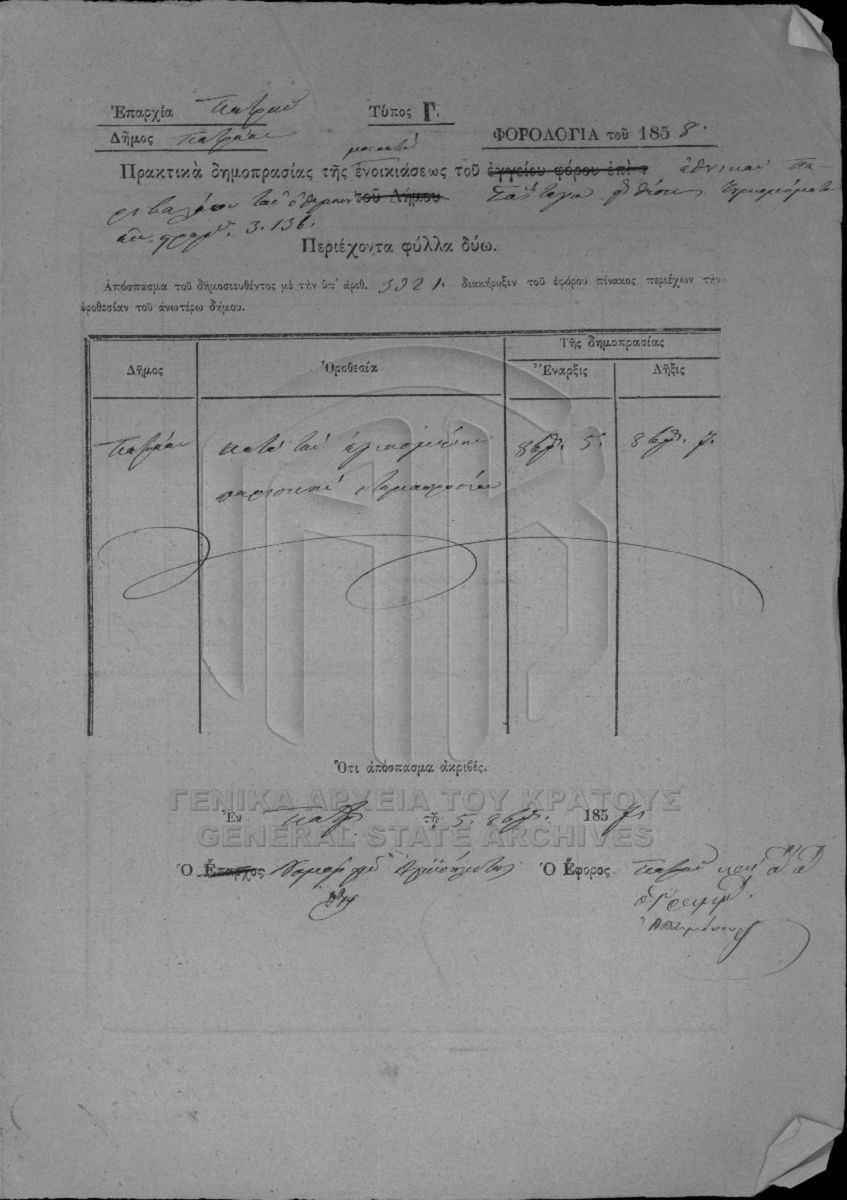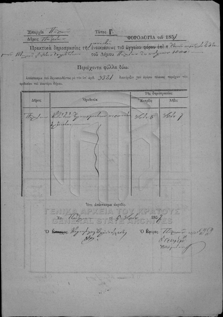 Location annuelle et pluriannuelles des terains nationaux soumis a l’usure. Departement d’Aitolie et Acarnanie.