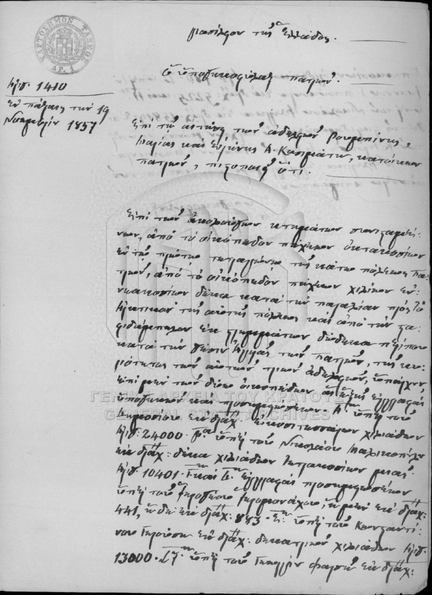 SECRETARIAT/MINISTRY OF FINANCE ARCHIVE: NATIONAL LANDS (1833-1869) - SECRETARIAT/MINISTRY OF FINANCE ARCHIVE: NATIONAL LANDS (1833-1869)  [1833 - 1869]