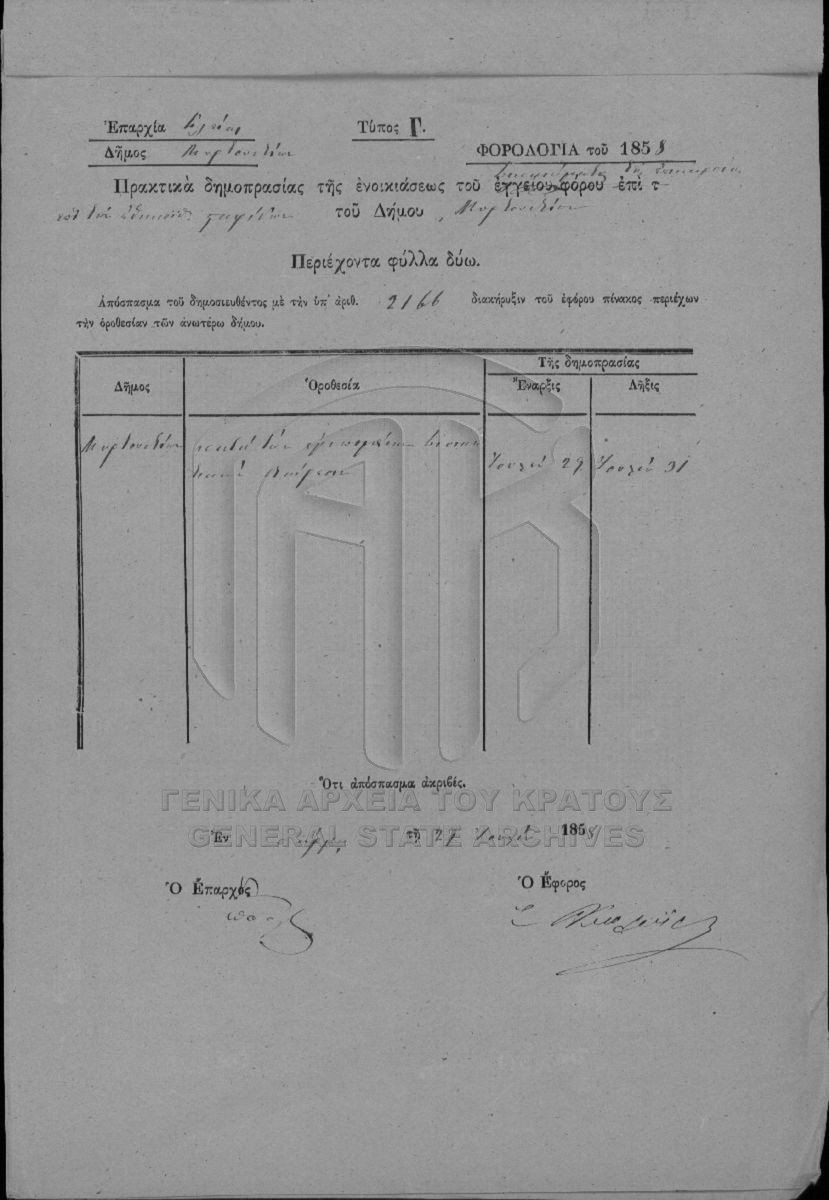 Multiannual and annual rentals of national perishable estates. Prefecture of Achaia and Ilida.