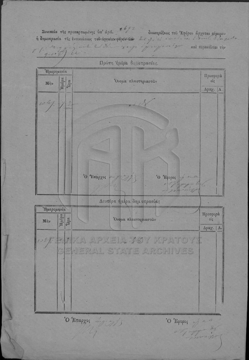 Location annuelle et pluriannuelles des terains nationaux soumis a l’usure. Departement d’Aitolie et Acarnanie.