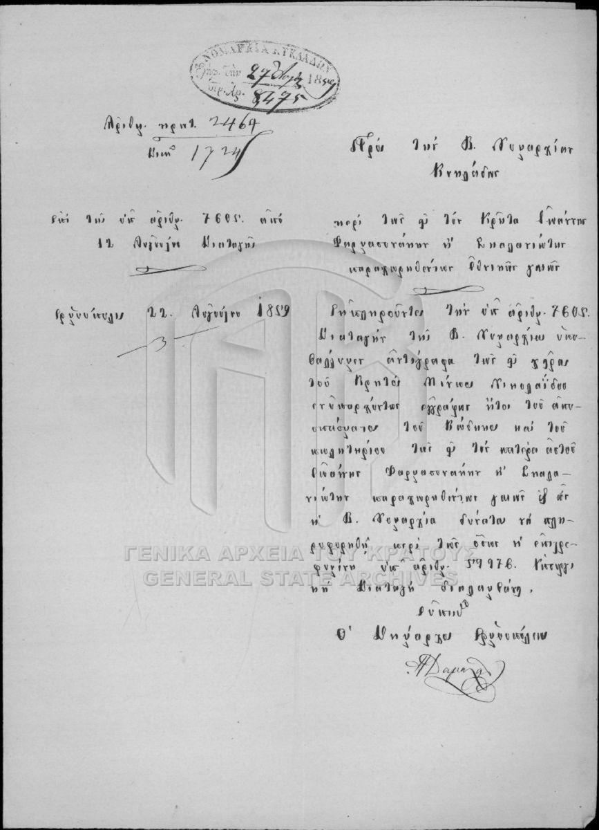 [Fonds] GRGSA-CSA_PAO005.01 SECRETARIAT/MINISTRY OF FINANCE ARCHIVE: NATIONAL LANDS (1833-1869) - SECRETARIAT/MINISTRY OF FINANCE ARCHIVE: NATIONAL LANDS (1833-1869) [1833 - 1869] Το αρχειακό σύνολο «Εθνικά Κτήματα» αποτελεί τμήμα του αρχείου της Κεντρικής Υπηρεσίας του Υπουργείου Οικονομικών και περιλαμβάνει τεκμήρ... |