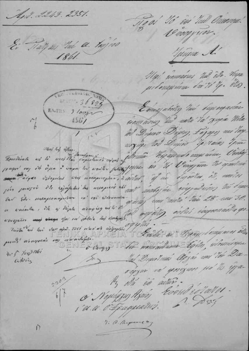 Φάκελος #2160 - Νομαρχία Αχαΐας και Ήλιδος, 1861  [1861]