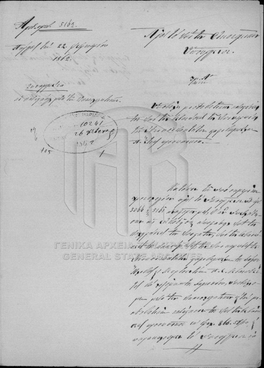 Φάκελος #2162 - Νομαρχία Αχαΐας και Ήλιδος, 1862  [1862]