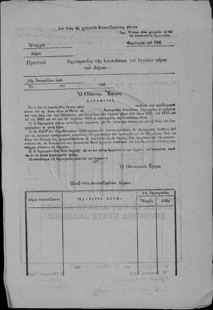 Location annuelle et pluriannuelles des terains nationaux soumis a l’usure. Departement d’Aitolie et Acarnanie.