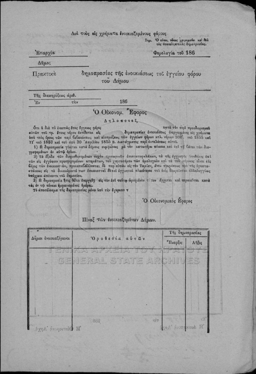 Multiannual and annual rentals of national perishable estates. Prefecture of Achaia and Ilida.