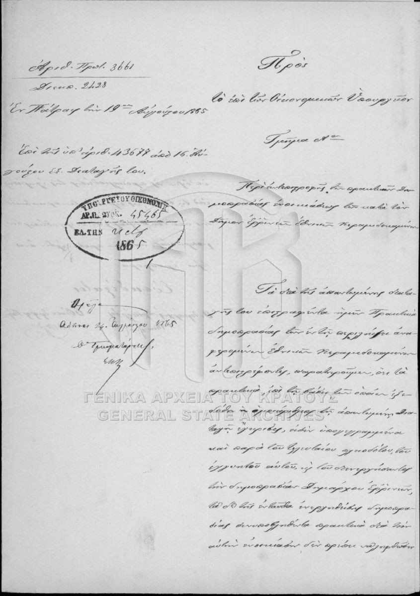 SECRETARIAT/MINISTRY OF FINANCE ARCHIVE: NATIONAL LANDS (1833-1869) - SECRETARIAT/MINISTRY OF FINANCE ARCHIVE: NATIONAL LANDS (1833-1869)  [1833 - 1869]