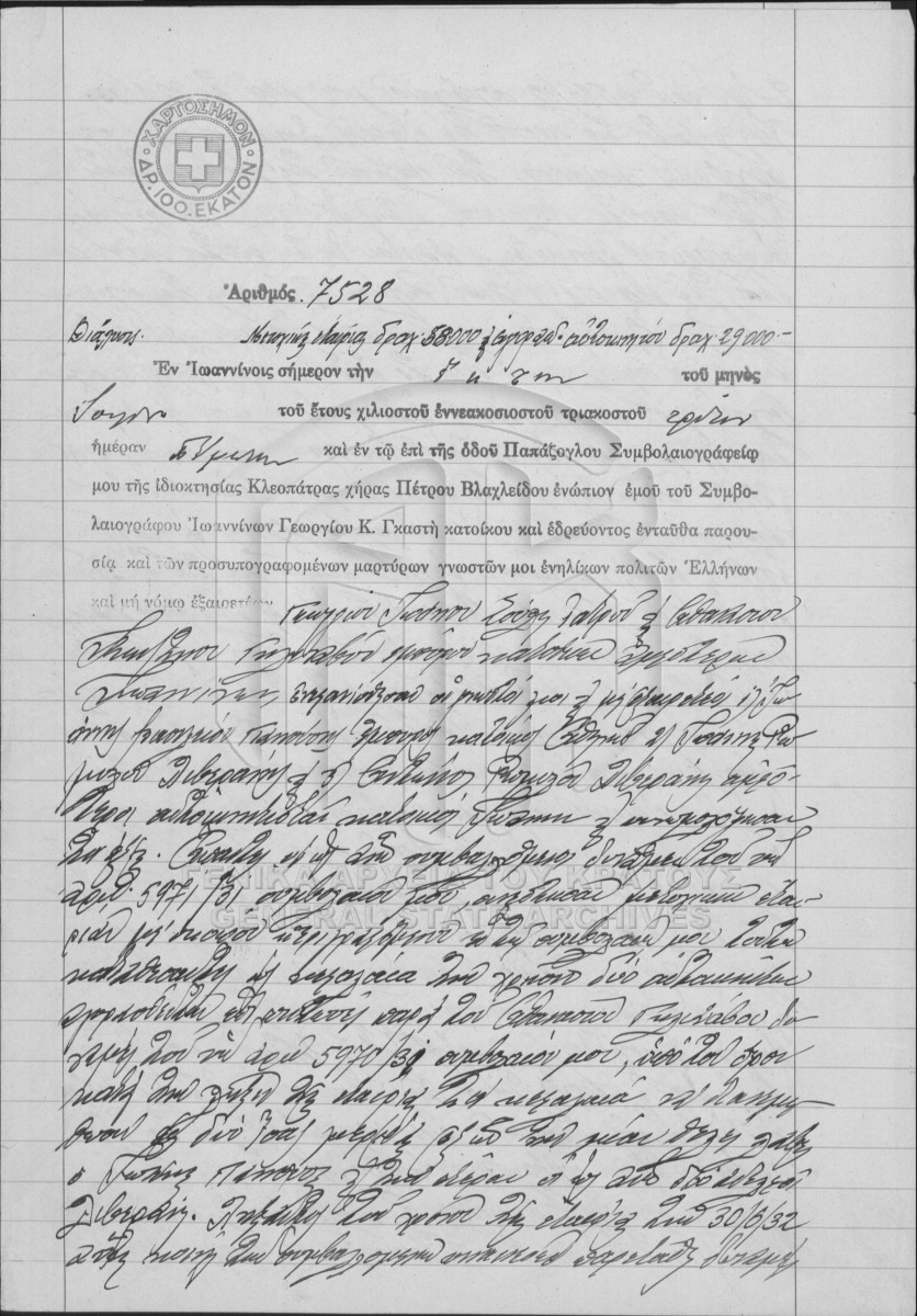 [Pièce] GRGSA-IAE_NOT001.01.F000029.IT007528 Pièce #7528 [6 Ιουλίου 1933] Συμβολαιογραφική πράξη. Μετοχική εταιρεία αγοραπωλησία αυτοκινήτου. |