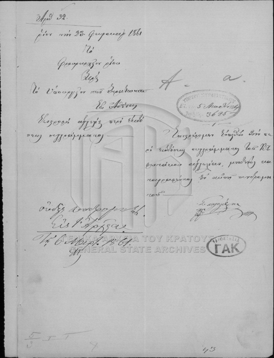 File #054 - MILITARY AFFAIRS MINISTRY ARCHIVE (1833-1862).  [1860 - 1862]
