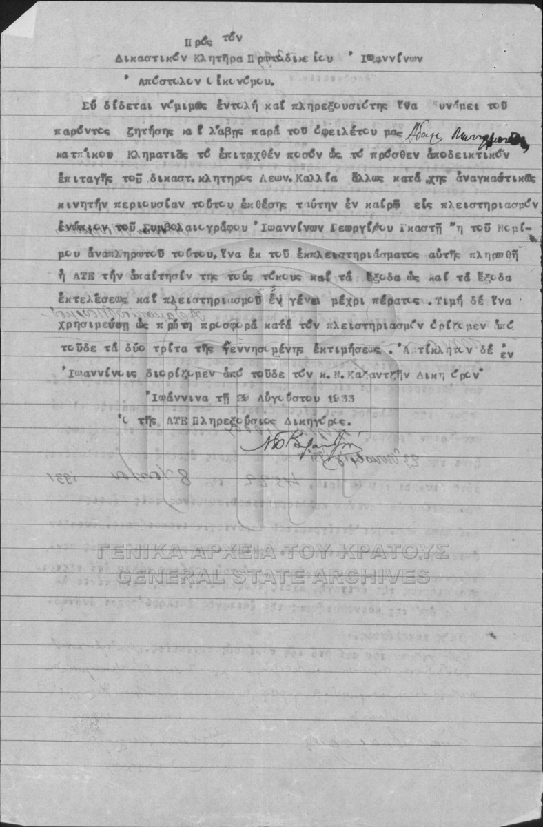 Item #7704  [9 Σεπτεμβρίου 1933]