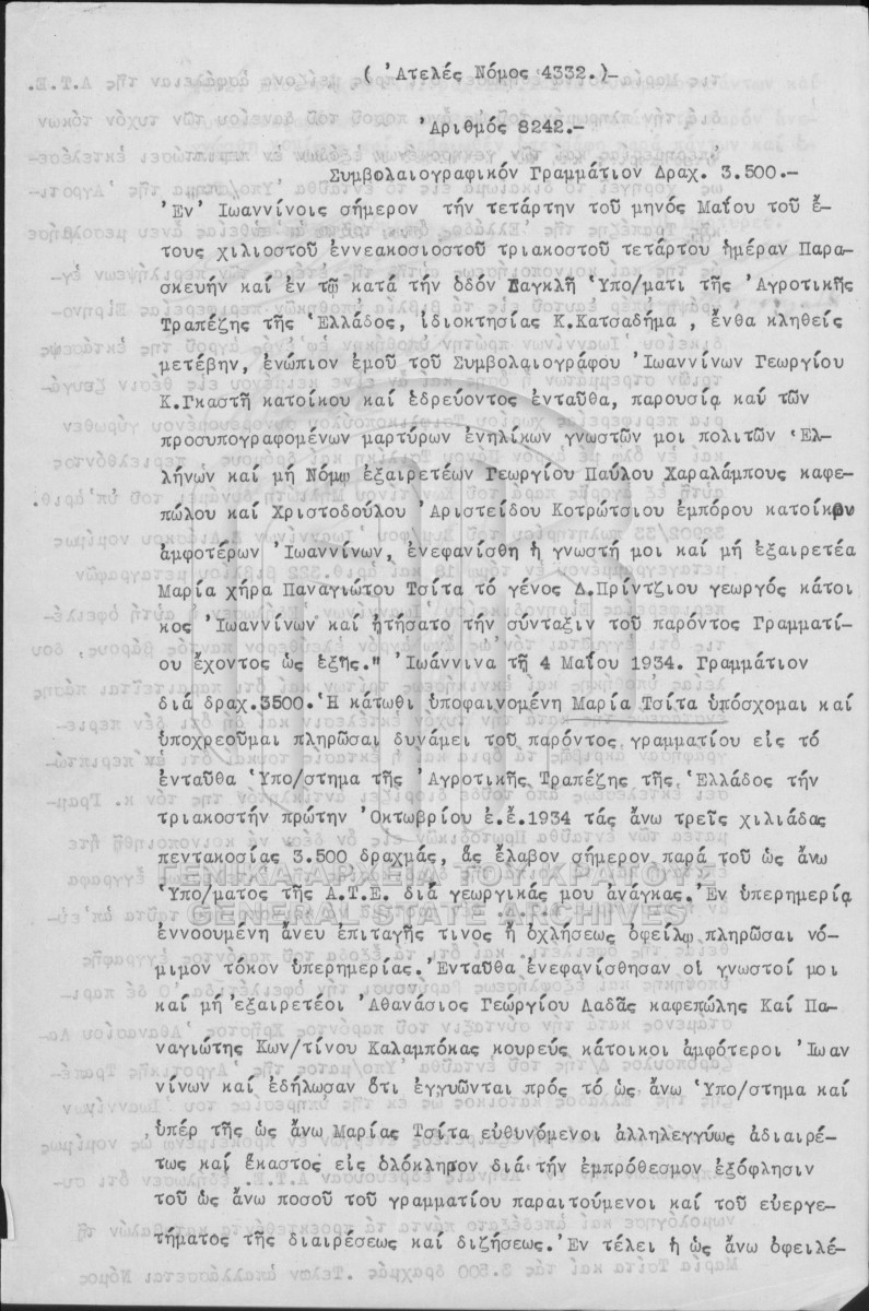 [Τεκμήριο] GRGSA-IAE_NOT001.01.F000032.IT008242 Τεκμήριο #8242 [4 Μαΐου 1934] Συμβολαιογραφική πράξη. Συμβολαιογραφικό γραμμάτιο. |