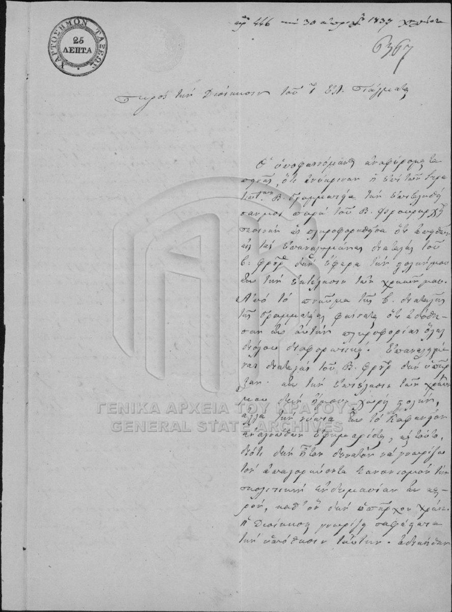 [Fonds] GRGSA-CSA_PAO007 Αρχείο Γραμματείας / Υπουργείου επί των Στρατιωτικών [1833 - 1862] Περιέχει φακέλους που έχουν προκύψει από τη διοικητική παραγωγή των τμημάτων Α΄ Προσωπικό – Οργάνωση, Β΄ Στρατιωτική νομοθεσία – Δικαιοσύ... |