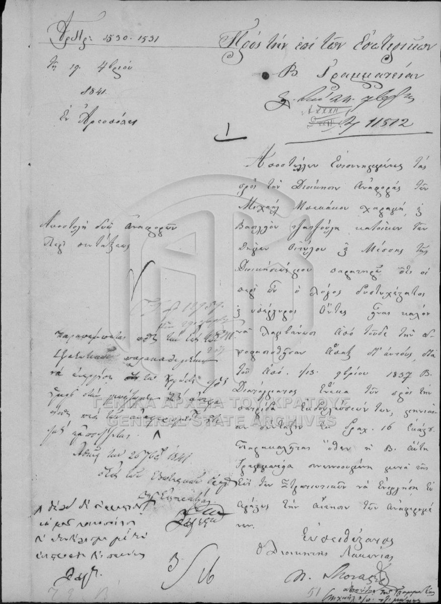 File #457 - MILITARY AFFAIRS MINISTRY ARCHIVE (1833-1862).  [1841]