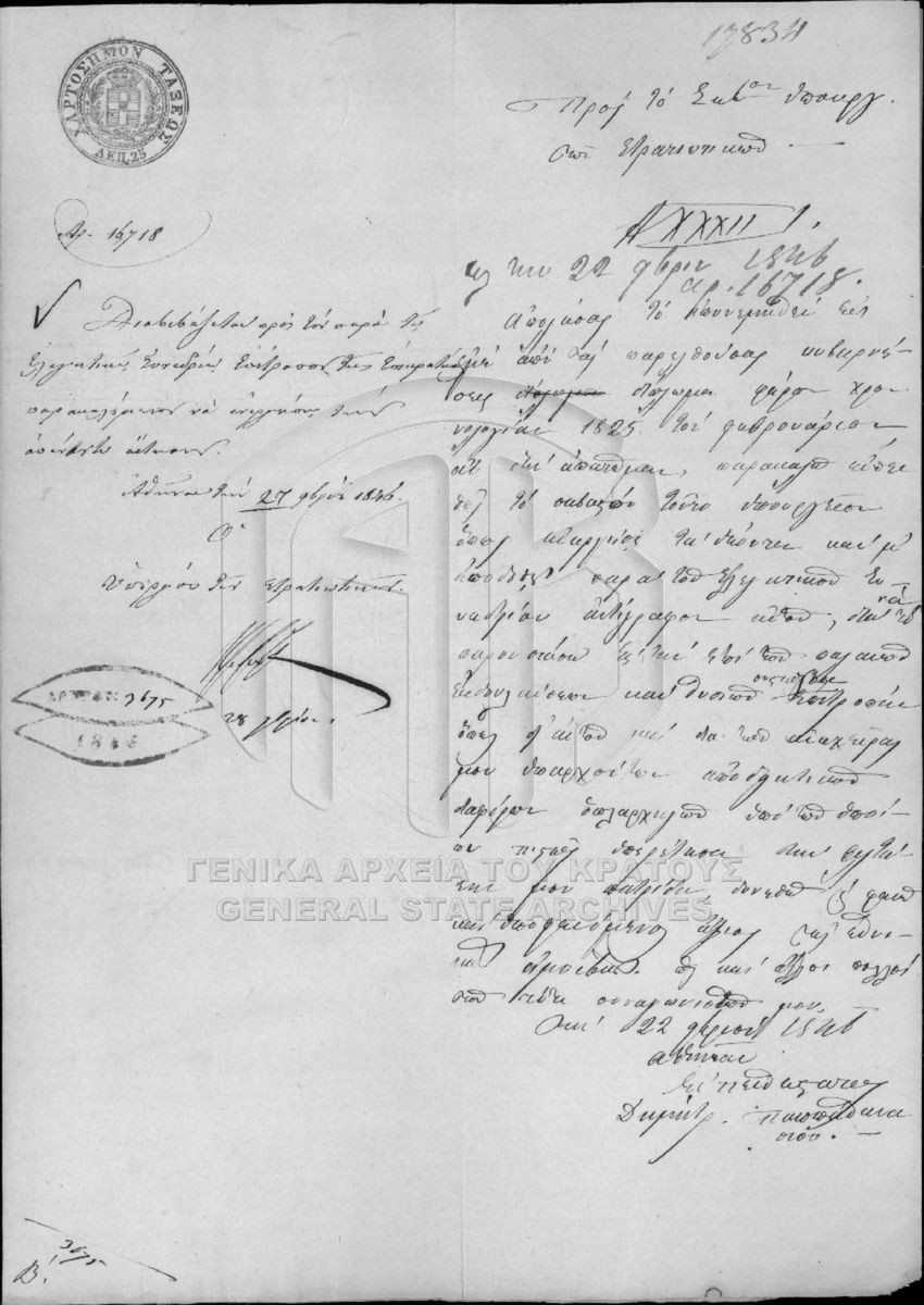 [Fonds] GRGSA-CSA_PAO007 Αρχείο Γραμματείας / Υπουργείου επί των Στρατιωτικών [1833 - 1862] Περιέχει φακέλους που έχουν προκύψει από τη διοικητική παραγωγή των τμημάτων Α΄ Προσωπικό – Οργάνωση, Β΄ Στρατιωτική νομοθεσία – Δικαιοσύ... |