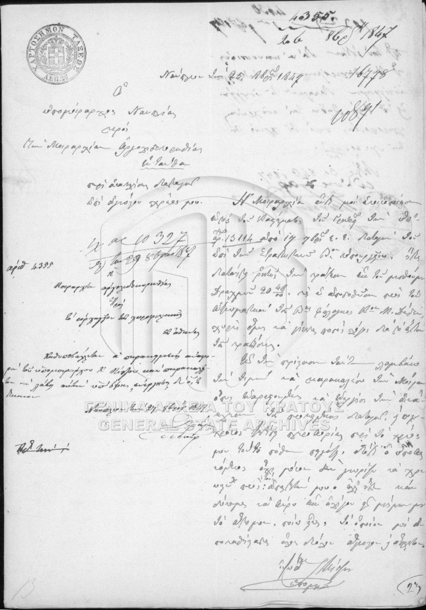 [Fonds] GRGSA-CSA_PAO007 Αρχείο Γραμματείας / Υπουργείου επί των Στρατιωτικών [1833 - 1862] Περιέχει φακέλους που έχουν προκύψει από τη διοικητική παραγωγή των τμημάτων Α΄ Προσωπικό – Οργάνωση, Β΄ Στρατιωτική νομοθεσία – Δικαιοσύ... |