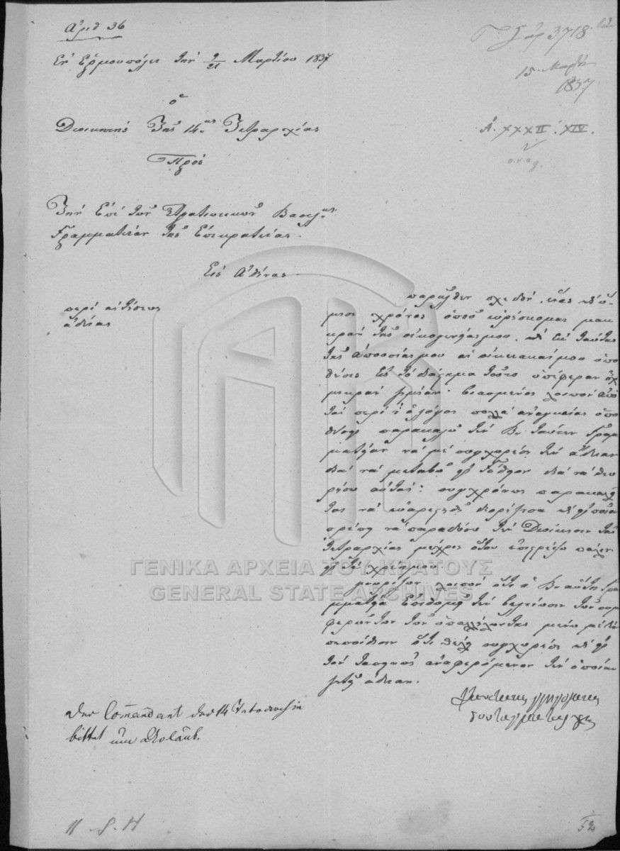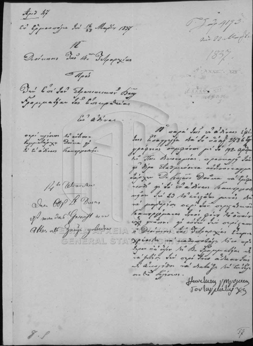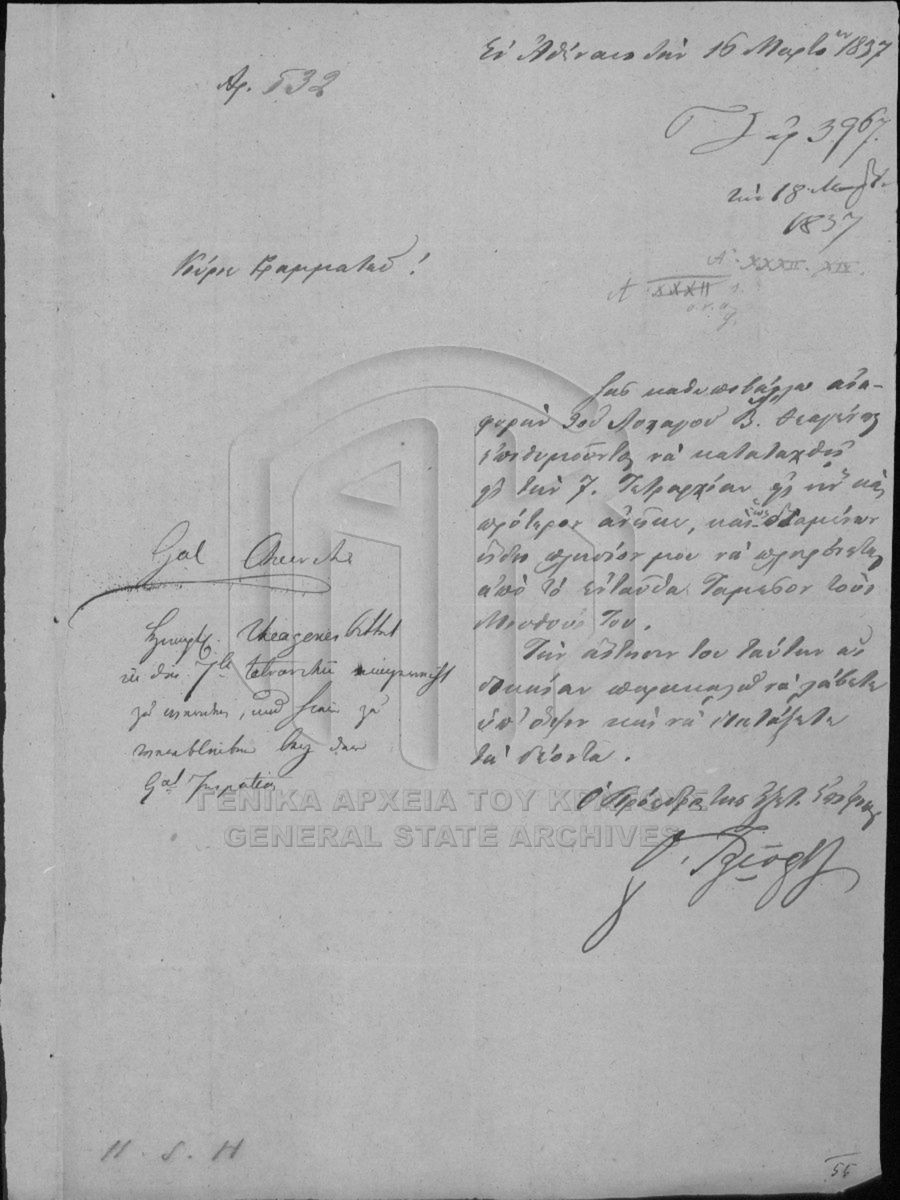 [Fonds] GRGSA-CSA_PAO007 Αρχείο Γραμματείας / Υπουργείου επί των Στρατιωτικών [1833 - 1862] Περιέχει φακέλους που έχουν προκύψει από τη διοικητική παραγωγή των τμημάτων Α΄ Προσωπικό – Οργάνωση, Β΄ Στρατιωτική νομοθεσία – Δικαιοσύ... |