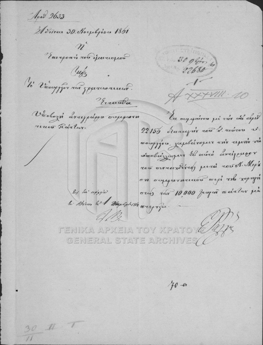File #647 - MILITARY AFFAIRS MINISTRY ARCHIVE (1833-1862).  [1861]