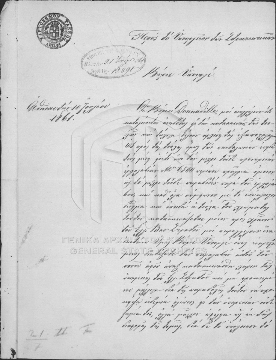 File #647 - MILITARY AFFAIRS MINISTRY ARCHIVE (1833-1862).  [1861]