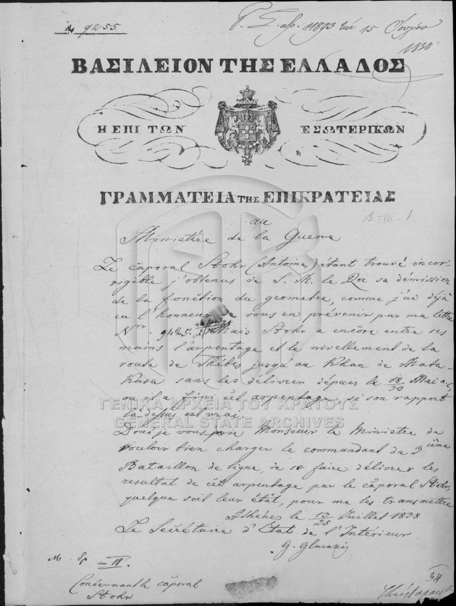 Αρχείο Γραμματείας / Υπουργείου επί των Στρατιωτικών  [1833 - 1862]