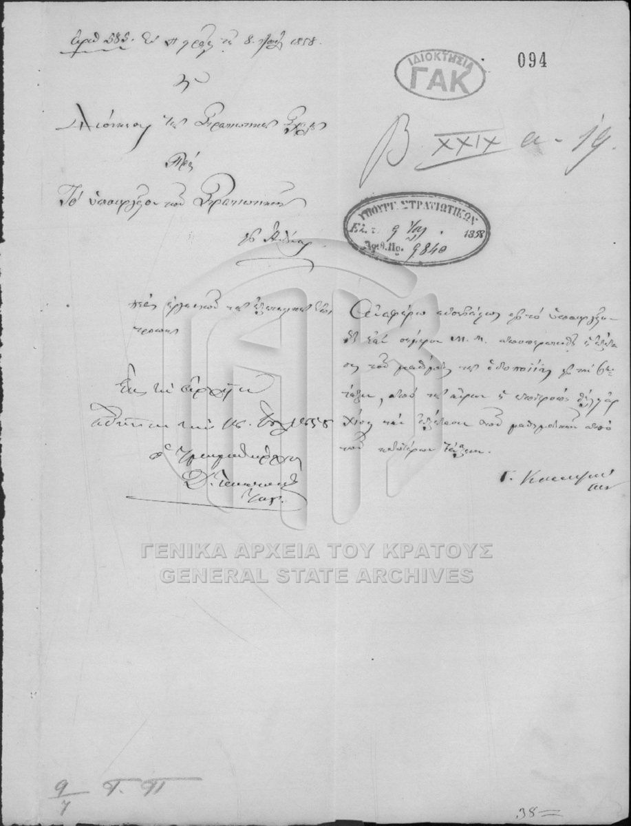 Αρχείο Γραμματείας / Υπουργείου επί των Στρατιωτικών  [1833 - 1862]