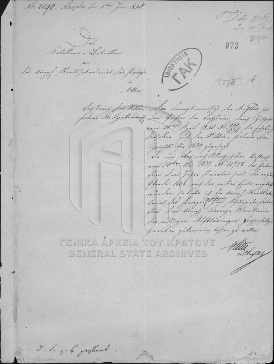 [Series] GRGSA-CSA_PAO007.S02 Series #002 - MILITARY AFFAIRS MINISTRY ARCHIVE (1833-1862). [1833 - 1862] Έγγραφα σχετικά με τη στρατιωτική (ποινική) νομοθεσία και τα στρατιωτικά δικαστήρια καθώς και κοινοποιήσεις υπηρεσίας σε διάφορα υπουργεία. |