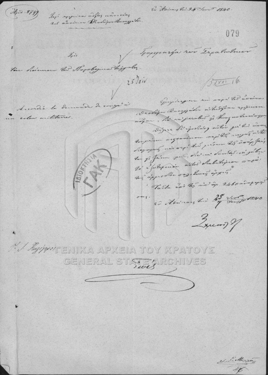 [Fonds] GRGSA-CSA_PAO007 Αρχείο Γραμματείας / Υπουργείου επί των Στρατιωτικών [1833 - 1862] Περιέχει φακέλους που έχουν προκύψει από τη διοικητική παραγωγή των τμημάτων Α΄ Προσωπικό – Οργάνωση, Β΄ Στρατιωτική νομοθεσία – Δικαιοσύ... |