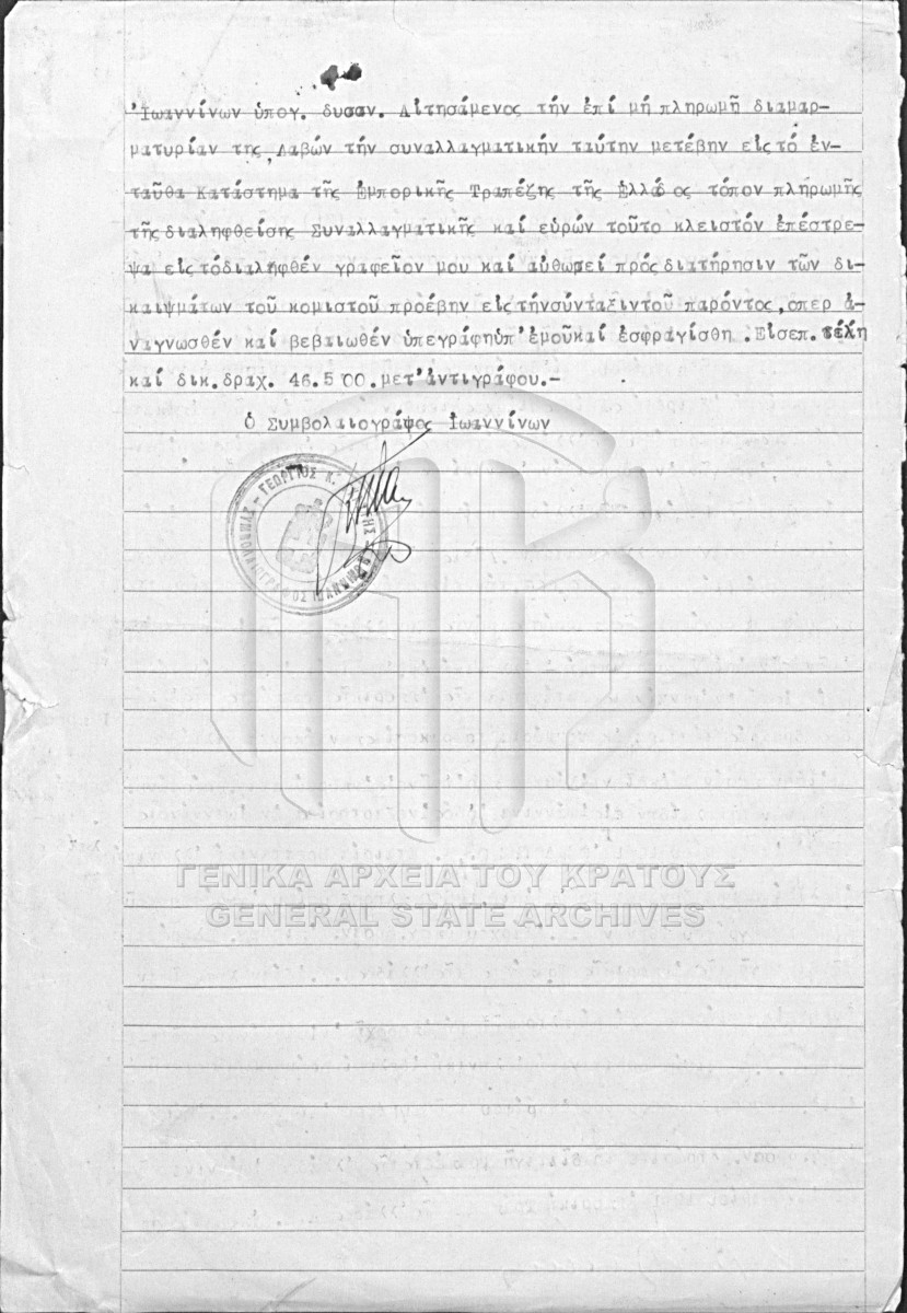 [Pièce] GRGSA-IAE_NOT001.01.F000087.IT020838 Pièce #20838 [31 Δεκεμβρίου 1951] Συμβολαιογραφική πράξη. Διαμαρτυρικό. |
