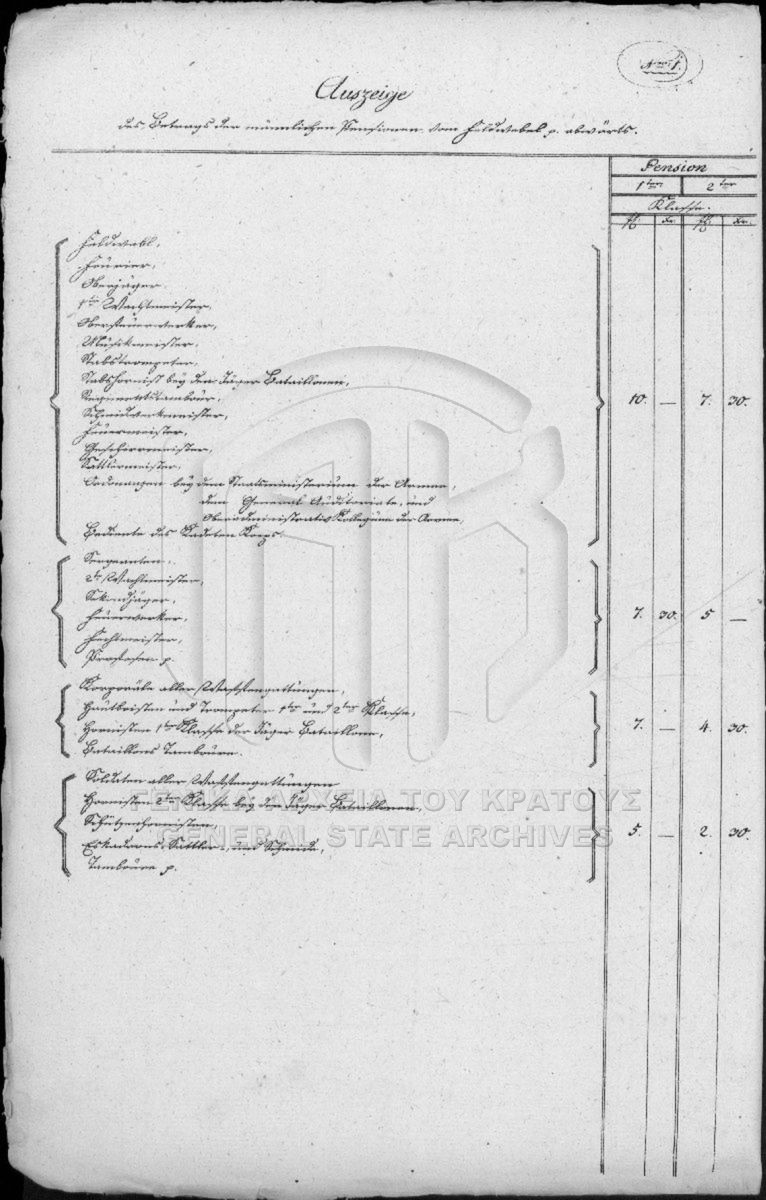 [Σειρά] GRGSA-CSA_PAO007.S04 Σειρά #004 - Τμήμα Δ΄ Οικονομικά - Λογιστικά [1833 - 1862] Έγγραφα σχετικά με προϋπολογισμούς, τροφοδοσία, γραφική ύλη, ιππονομή, συντάξεις κ.α. |