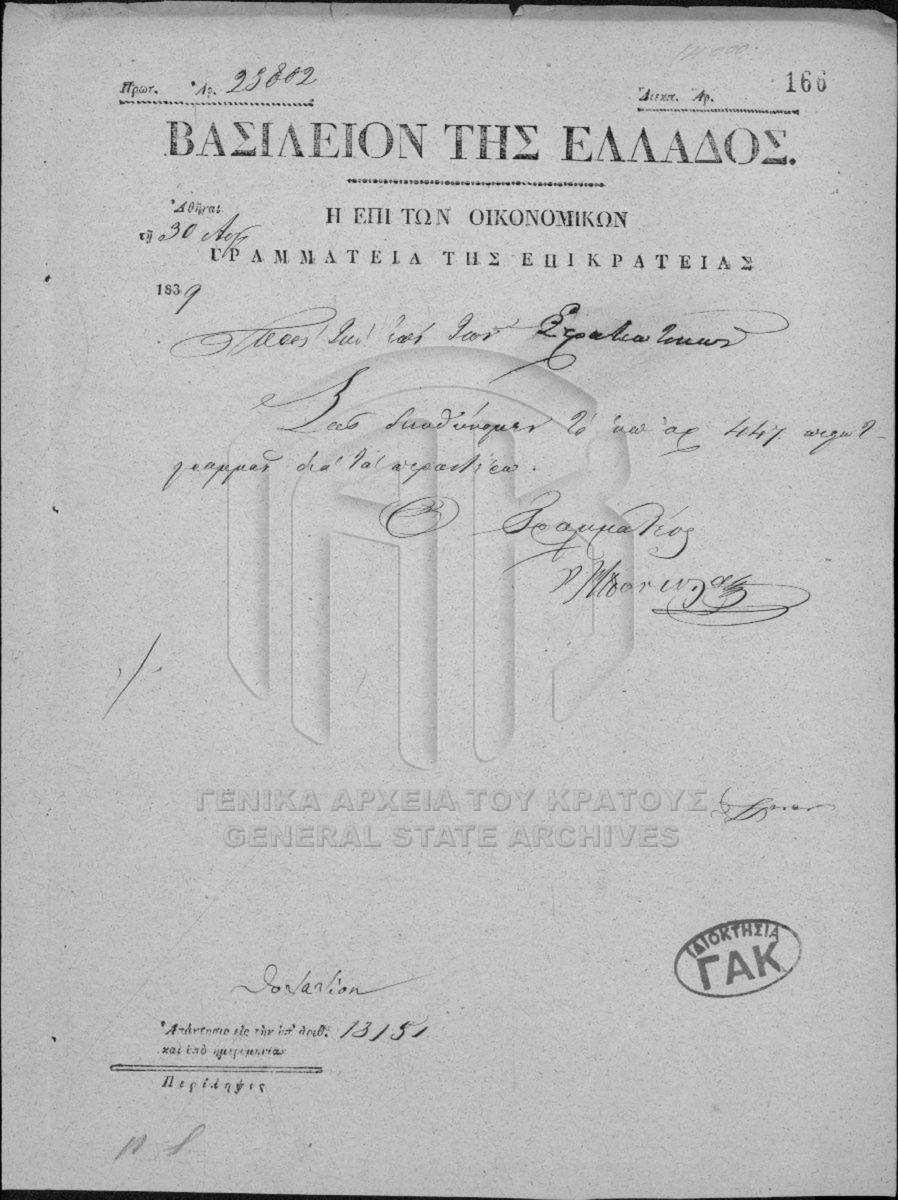 File #028 - Αρχείο Προικοδοτήσεων Φαλαγγιτών  [1839]