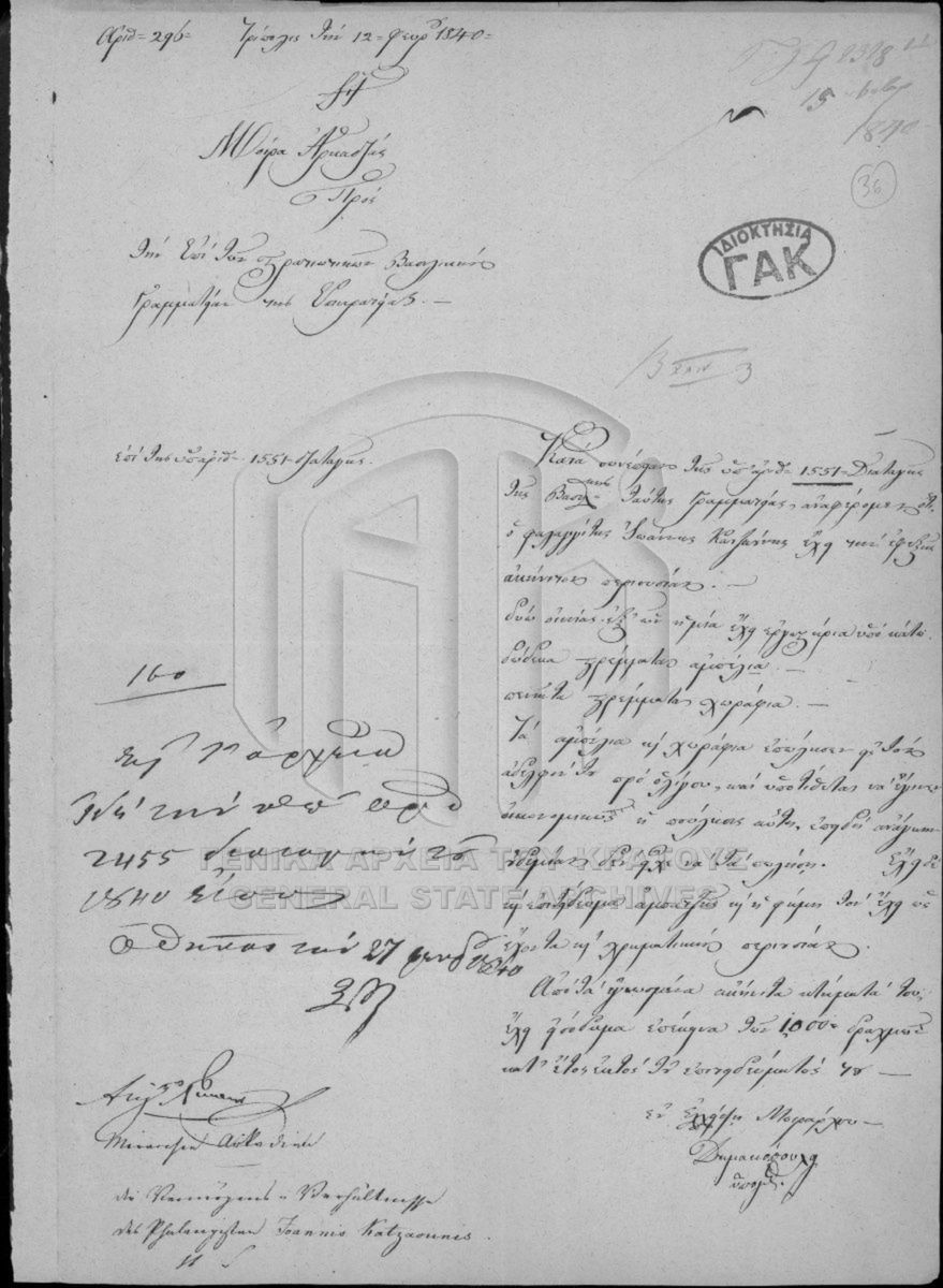 Φάκελος #038 - Αρχείο Προικοδοτήσεων Φαλαγγιτών  [1840]