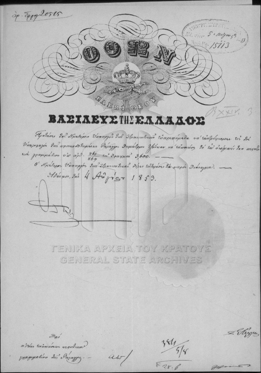 Αρχείο Υπουργείου Στρατιωτικών. Προικοδοτήσεις Φαλαγγιτών (περιόδου Όθωνος)  [1838 - 1865]