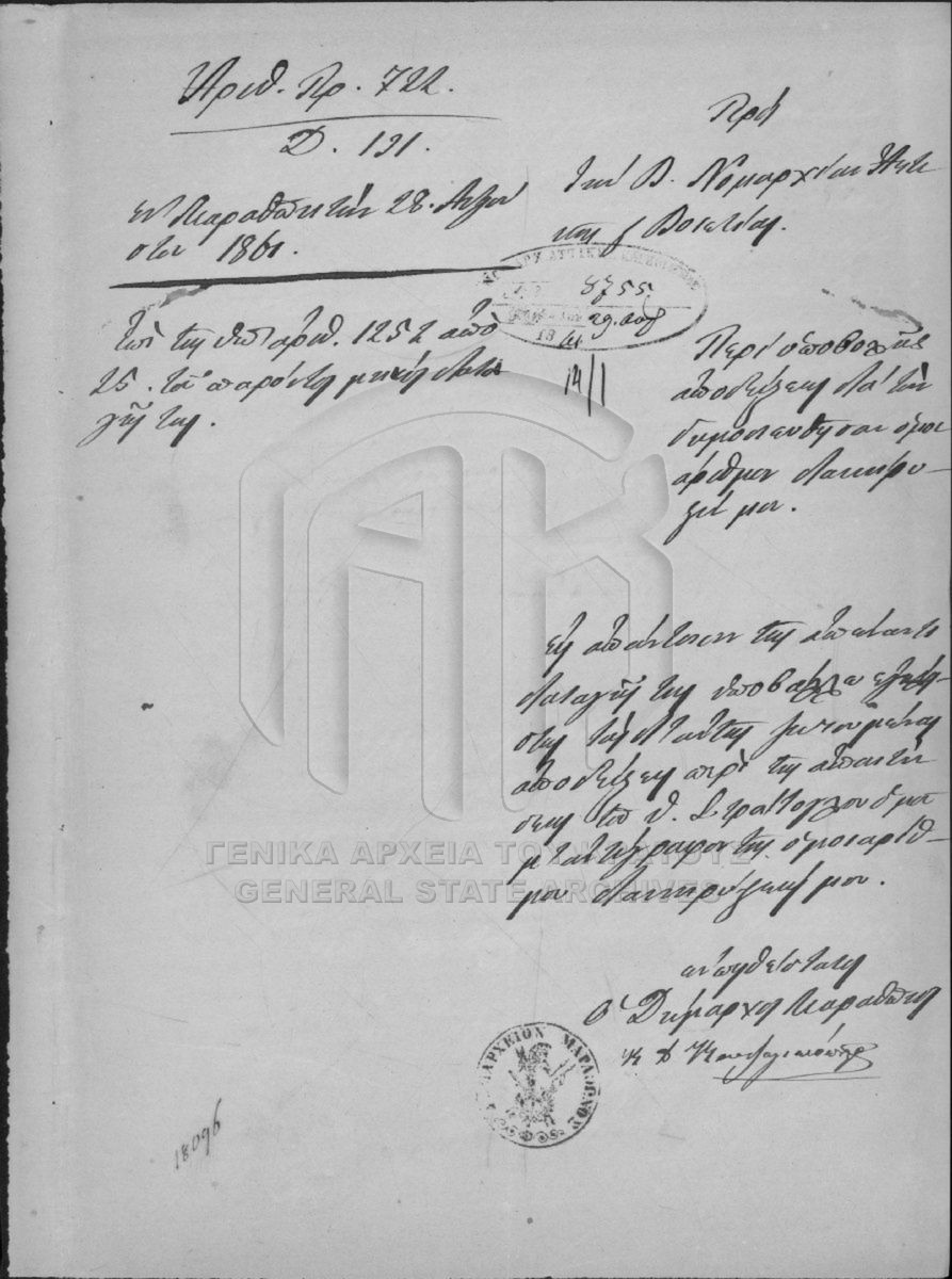 Φάκελος #116 - Αρχείο Προικοδοτήσεων Φαλαγγιτών  [1861 - 1862]