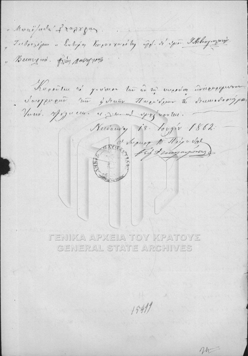 Φάκελος #117 - Αρχείο Προικοδοτήσεων Φαλαγγιτών  [1862]
