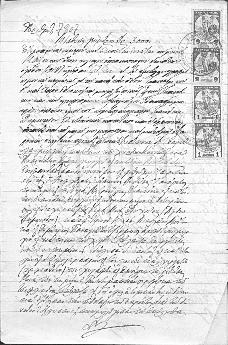 [Pièce] GRGSA-IAE_NOT002.01.F000017.IT007807 Pièce #7807 [29 Μαΐου 1918] Συμβολαιογραφική πράξη. Μίσθωση γεωμόρου. |