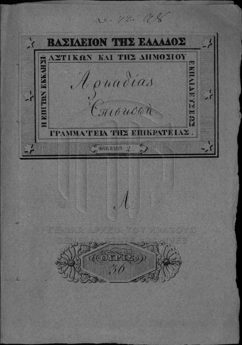 [Φάκελος] GRGSA-CSA_PAO013.S01.01.F000604 Φάκελος #604 - Αρκαδίας Επισκοπή [1833] |