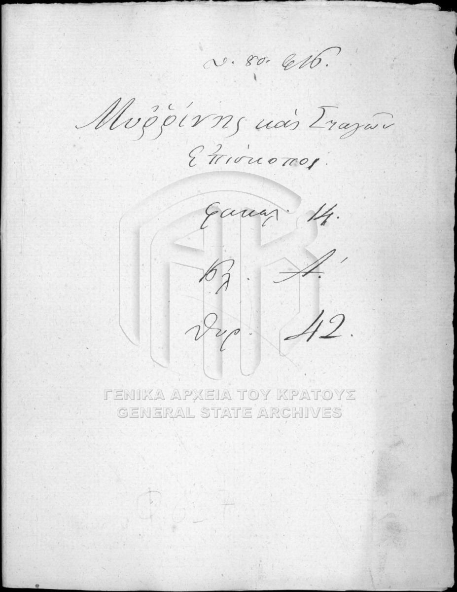 [File] GRGSA-CSA_PAO013.S01.01.F000637 File #637 - SECRETARIAT/MINISTRY OF ECCLESIASTICAL ISSUES AND STATE EDUCATION ARCHIVE (1833-1848) [1834] Bishop of Myrini and Stagon. |