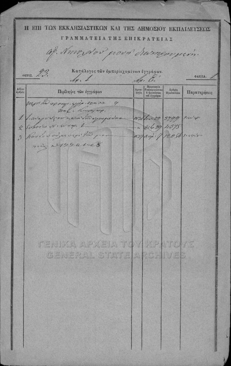 [File] GRGSA-CSA_PAO013.S01.01.F000661 File #661 - SECRETARIAT/MINISTRY OF ECCLESIASTICAL ISSUES AND STATE EDUCATION ARCHIVE (1833-1848) Ag. Nikolaos Monastery (existing). |