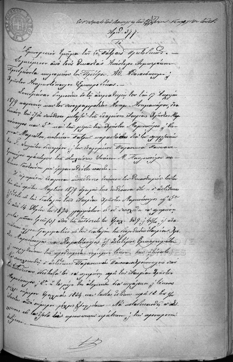 File #108 - PATRAS COURT OF FIRST INSTANCE ARCHIVE. COMMERCIAL TRIBUNAL  [1879]