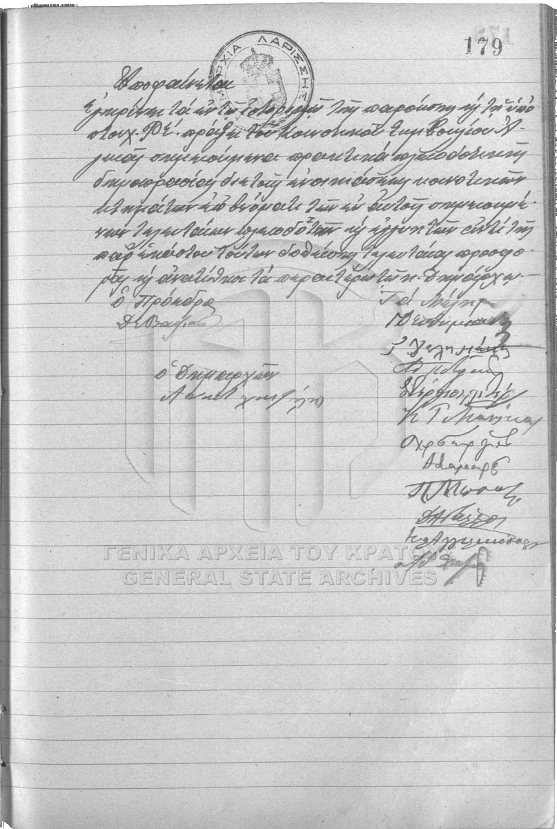 Πρακτικά Δημ. Συμβουλίου Δήμου Δωτίου.