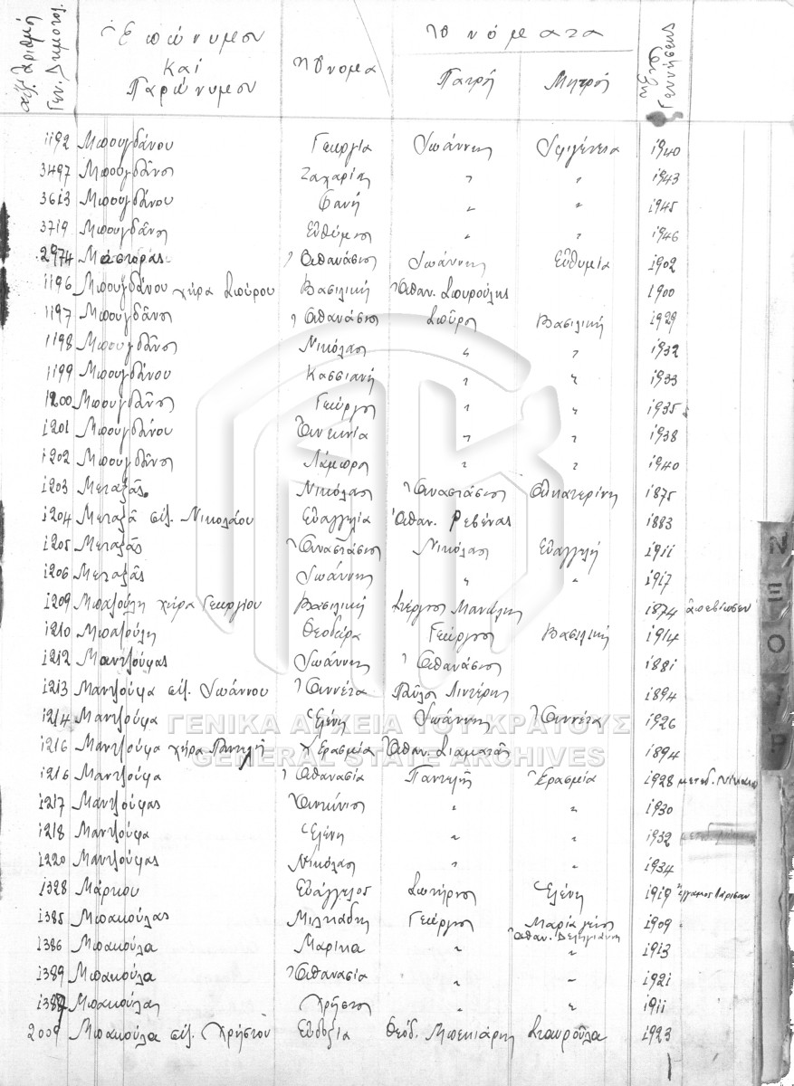 Ευρετήριο Δημοτολογίου 1850 - 1953.