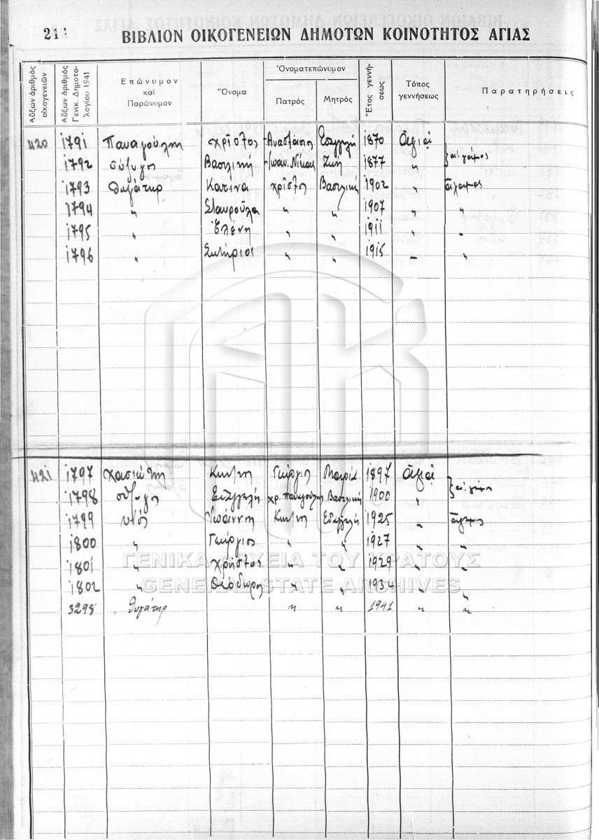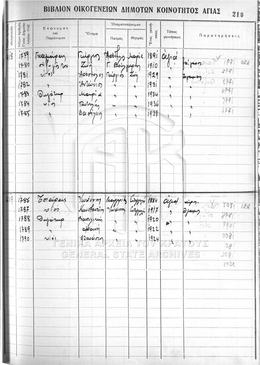 ΑΡΧΕΙΟ ΚΟΙΝΟΤΗΤΑΣ ΑΓΙΑΣ  [1850 - 1955]