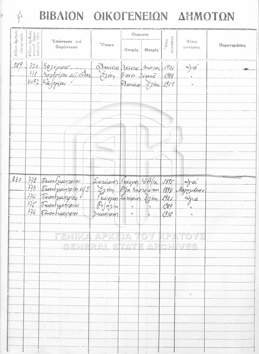 [Fichier] GRGSA-AGI_MUN002.01.F000026 Fichier #026 [1914-1951] Δημοτολόγιο. |