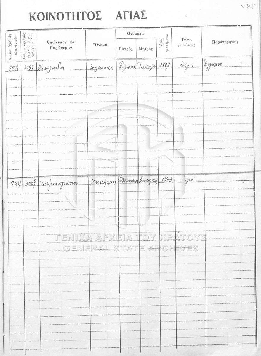 ΑΡΧΕΙΟ ΚΟΙΝΟΤΗΤΑΣ ΑΓΙΑΣ  [1850 - 1955]
