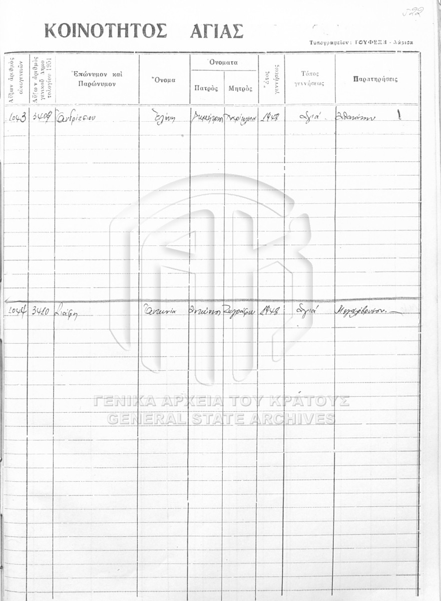 ΑΡΧΕΙΟ ΚΟΙΝΟΤΗΤΑΣ ΑΓΙΑΣ  [1850 - 1955]